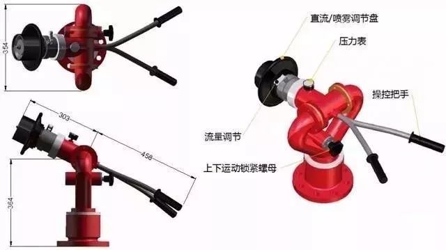 喷射水灭火剂的固定消防炮系统,主要由水源、消防泵组、管道、阀门、水炮、动