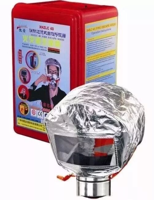 自救呼吸器:当发生火灾时,立即沿包装盒井启标志方向打开盒盖,撕开包装袋取出呼吸器,沿系在在包装盒中的提醒带绳拔掉前后封口板,将呼吸器套入头部,拉紧头带,迅速逃离火场。